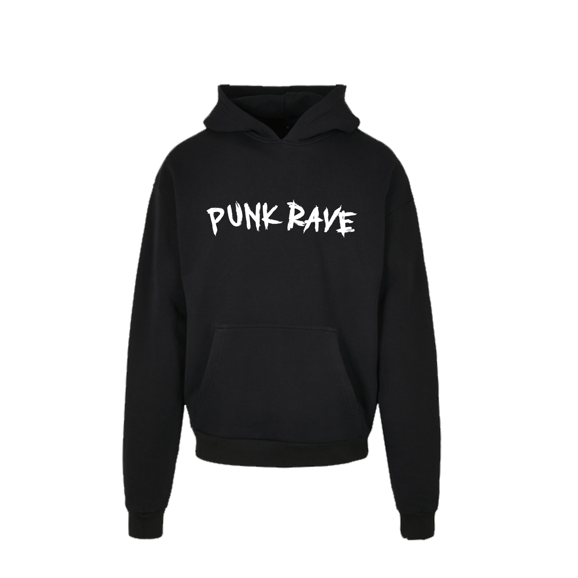 PUNK-ROCK x EDM - This is the black 'Punk-Rave' Hoodie with logo-print on the front & a cool overlay design on the back. An absolute must-have if you wanna join the Punk-Rave family! (and it keeps you warm too!)