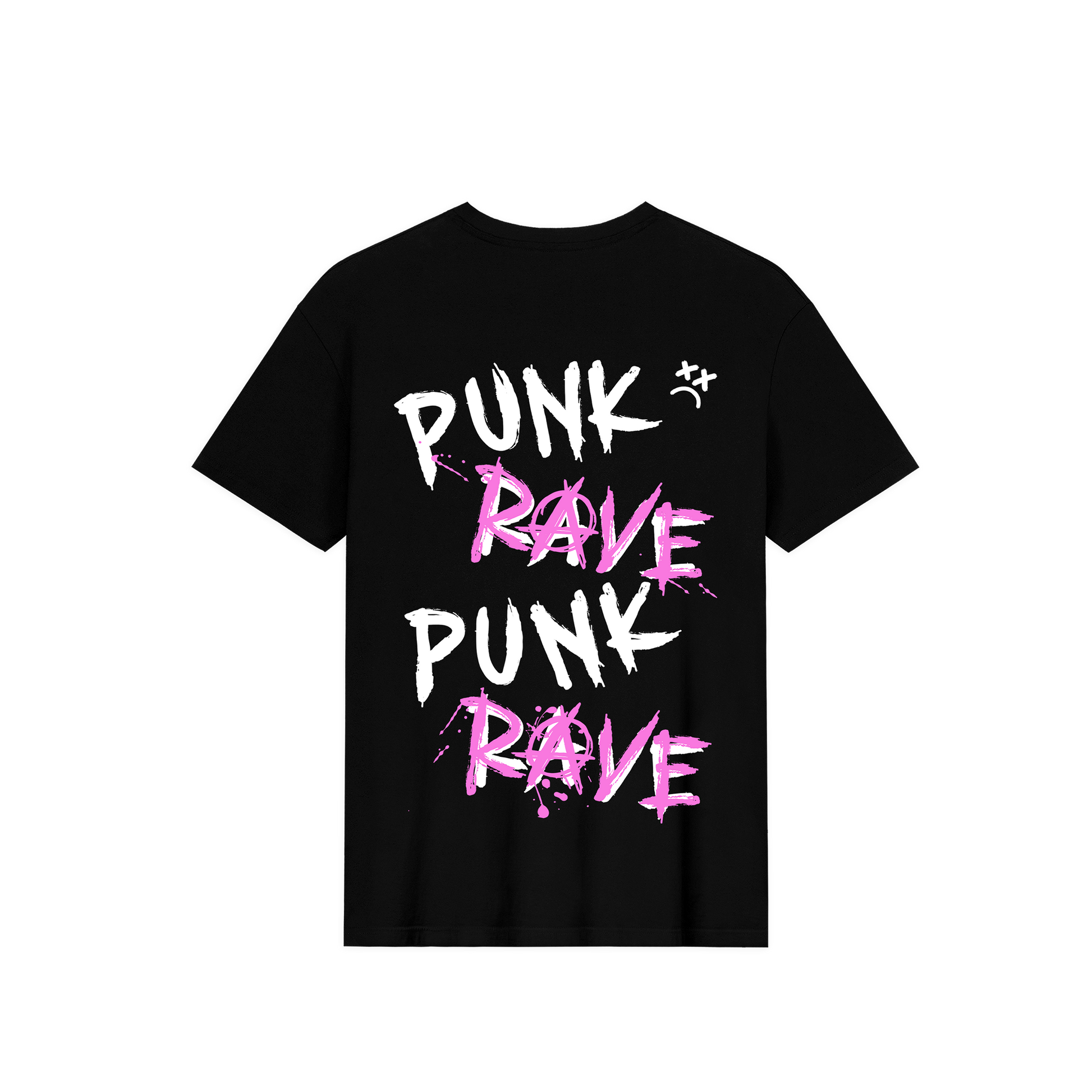 PUNK-ROCK x EDM - This is the black 'Punk-Rave' shirt with logo-print on the front & a cool overlay design on the back. An absolute must-have if you wanna join the Punk-Rave family and looks amazing with cut off sleeves too!